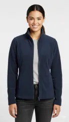 Bluză de damă din polar, cu mânecă lungă, fermoar frontal și buzunare, în nuanță clasică de bleumarin.