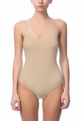 Body confortabil și elegant, realizat din bumbac moale cu elastan pentru o potrivire perfectă. Design cu bretele subțiri și croială tanga, ideal pentru a fi purtat pe sub haine. Se închide ușor cu două capse.