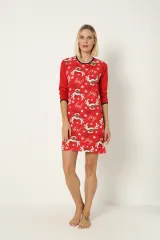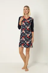 Cămașă de noapte festivă în culoare bleumarin, decorată cu imprimeu cu reni. Confortabilă și plăcută la purtare, realizată dintr-un material moale: 50% vâscoză și 50% poliester.