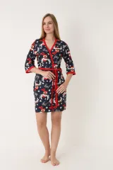 Datorită mânecilor 3/4, halatul este practic și confortabil, oferind libertate de mișcare. Materialul de calitate – 50% vâscoză și 50% poliester – este plăcut la atingere, ușor și potrivit pentru purtare zilnică în casă.