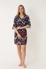Halat damă festiv, perfect pentru sezonul de iarnă. Model roșu cu imprimeu cu reni și mâneci 3/4, confecționat din material moale și confortabil: 50% vâscoză și 50% poliester.