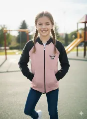 Acest hanorac pentru copii – fetițe îmbină confortul cu un design modern și practic. Este prevăzut cu glugă, fermoar frontal și buzunare laterale, oferind libertate de mișcare și ușurință la purtare.
