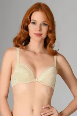 Sutien push-up elegant, din dantelă fină, cu bretele nedetachabile și cupă preformată din burete, oferind susținere confortabilă și un efect push-up generos.