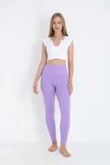 Colanți pentru damă cu model raiat și croială mulată, confecționați din material elastic și confortabil, în nuanță modernă de bej.